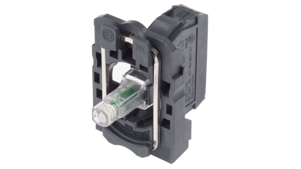 Blocco luminoso Schneider Electric, illuminazione costante, tensione nominale 24V ca/cc, corrente nominale 18mA, LED universale colore bianco, serie Harmony XB5, terminali a vite, collare di fissaggio incluso, durata utile 100000 ore, resistenza a sovratensioni fino a 1 kV, range di temperatura -40 °C a +70 °C. Non sostituibile l'elemento luminoso.