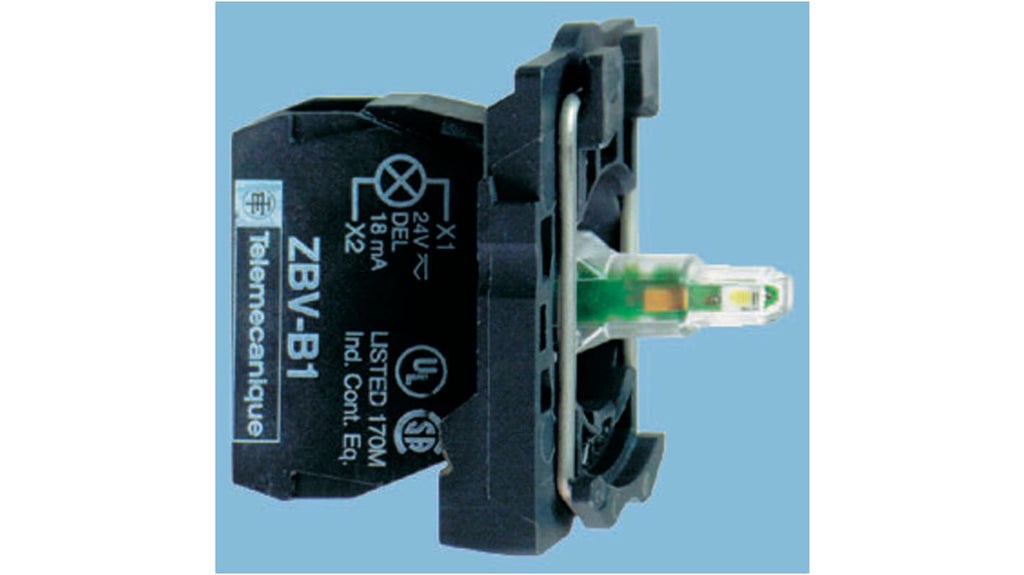 Blocco luminoso Schneider Electric, tensione nominale 230-240 V c.a., serie Harmony XB5, illuminazione a LED blu, LED inclusi, terminali a vite, corpo con collare di fissaggio incluso, conforme agli standard IEC, JIS, UL, CSA.