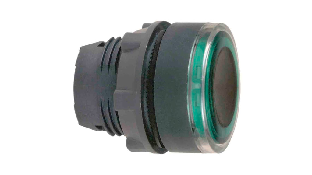 Attuatore pulsante tipo Instabile, anello illuminato, serie Harmony XB5. Diametro foro 22 mm, colore verde, forma rotonda. Installazione e sostituzione facilitata su unità a pulsante compatibili e blocchi di contatti tramite assemblaggio a innesto. Prodotto mercury free, progettato per ambienti difficili. Codice costruttore ZB5AW933, marchio Schneider Electric.