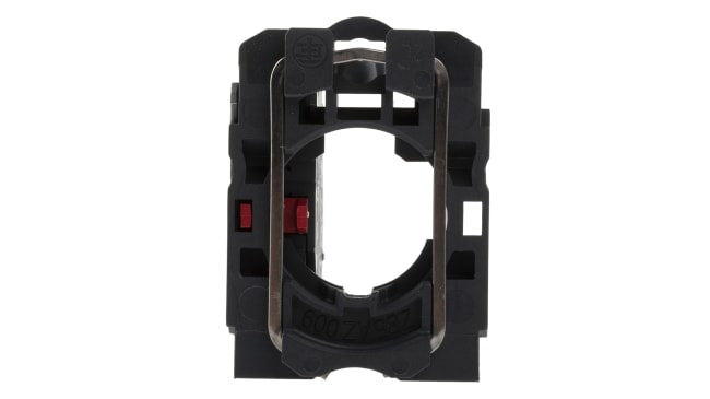 Blocco contatti SPST con supporto, tensione nominale 600V, corrente nominale 10A, terminali a vite. Serie Harmony XB5, corpo in plastica isolante, collare di fissaggio incluso. Temperatura di esercizio da -40 a 70 gradi Celsius, grado di protezione IP20. Durata meccanica di 1.000.000 cicli, conforme a EN/IEC 60947-1, UL 508 e CSA C22.2 n. 14. Adatto per applicazioni industriali e di distribuzione elettrica. Codice costruttore ZB5AZ102.