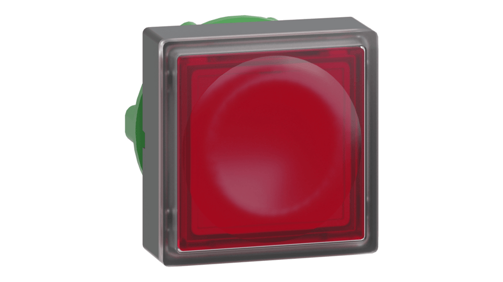 Attuatore pulsante tipo Instabile, testa quadrata, serie Harmony XB5. Diametro foro 22 mm, colore rosso, attuazione a pulsante, materiale plastico. Versioni illuminate o non illuminate, protezione IP66, tecnologia LED integrata con 100000 ore di servizio, resistente a vibrazioni e interferenze elettromagnetiche. Codice costruttore ZB5CW343, marchio Schneider Electric.