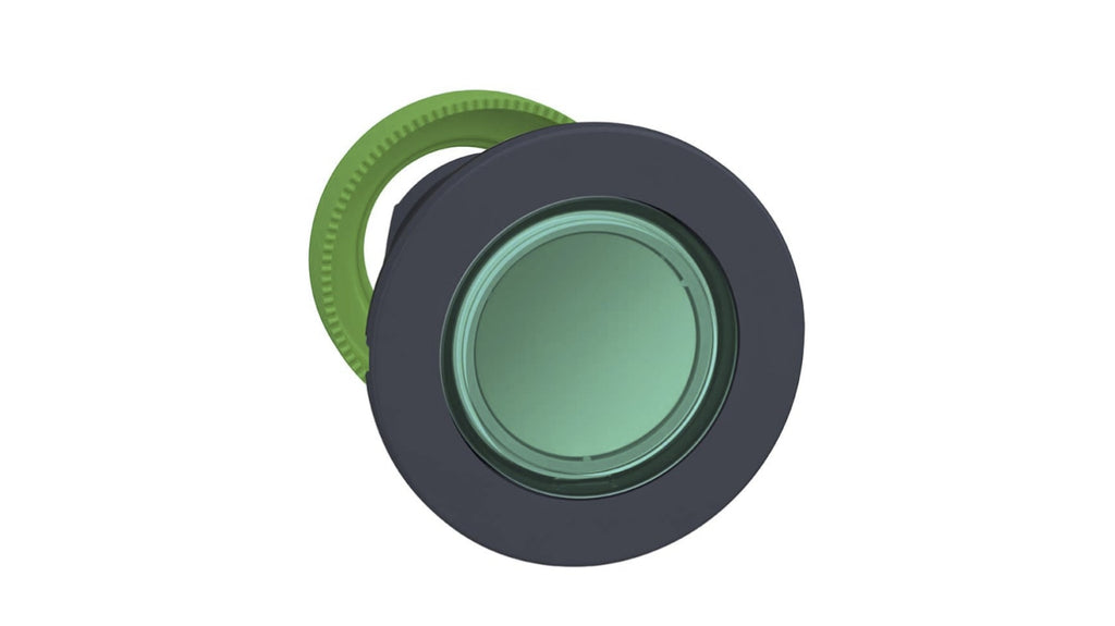 Attuatore pulsante tipo Instabile, testa rotonda, serie Harmony ZB5, diametro di montaggio 30 mm, colore verde, materiale plastica, ritorno a molla, incasso a filo, protezione IP66, IP67, IP69K, per inserimento della legenda. Settori di applicazione: produttori macchinari, industria chimica, cartiere, ambiente marino, costruttori di pannelli per distribuzione energia, alimenti e bevande, autolavaggi. Codice costruttore ZB5FA38.