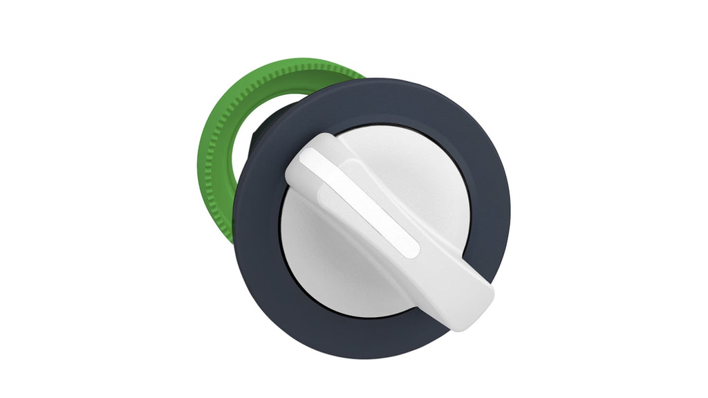 Testa selettore a 3 posizioni, diametro di montaggio 30 mm, impugnatura standard bianca, montaggio a filo, materiale cornice in plastica, attivazione stabile, angolo di corsa 45 gradi, protezione IP66, IP67, IP69K. Settori di applicazione: produttori macchinari, industria chimica, cartiere, ambiente marino, costruttori di pannelli per distribuzione energia, alimenti e bevande, autolavaggi. Codice costruttore ZB5FD301.