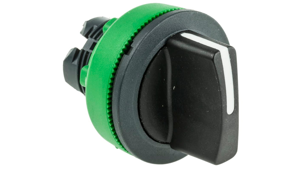 Testa selettore a 2 posizioni, montaggio a filo, diametro 30 mm, colore nero, impugnatura standard, ritorno a molla da destra a sinistra, angolo di corsa 90 gradi, protezione IP66, IP67, IP69K. Applicabile in settori come produttori macchinari, industria chimica, cartiere, alimenti e bevande. Codice costruttore ZB5FD4, serie Harmony XB5.
