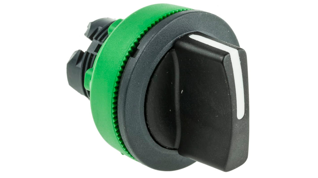 Testa selettore a 3 posizioni, montaggio a filo, diametro 30 mm, colore nero, impugnatura standard, ritorno a molla da destra al centro, angolo di corsa 45 gradi, protezione IP66, IP67, IP69K. Applicabile in settori come produttori macchinari, industria chimica, cartiere, ambiente marino. Codice costruttore ZB5FD8, serie Harmony XB5.