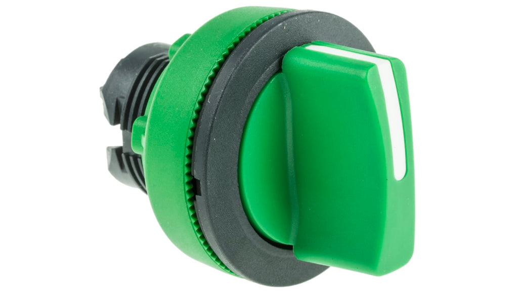 Testa selettore a 3 posizioni, montaggio a filo, diametro 30 mm, impugnatura standard verde, ritorno a molla da destra al centro. Materiale cornice in plastica, angolo di corsa 45 gradi, protezione IP66, IP67, IP69. Applicabile in settori come produttori macchinari, industria chimica, cartiere, alimenti e bevande. Codice costruttore ZB5FD803, marchio Schneider Electric.