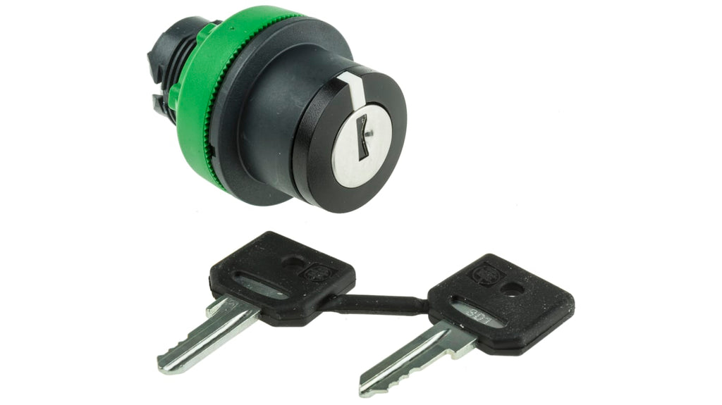 Testa selettore a chiave Schneider Electric serie Harmony XB5, montaggio a filo, 3 posizioni, ritorno a molla da sinistra al centro. Diametro di montaggio 30 mm, interruttore a chiave nero, posizione di rimozione chiave al centro, protezione IP66, IP67, IP69, temperatura operativa da -40°C a +70°C, durata meccanica 1000000 cicli. Settori di applicazione: macchinari, industria chimica, cartiere, ambiente marino.