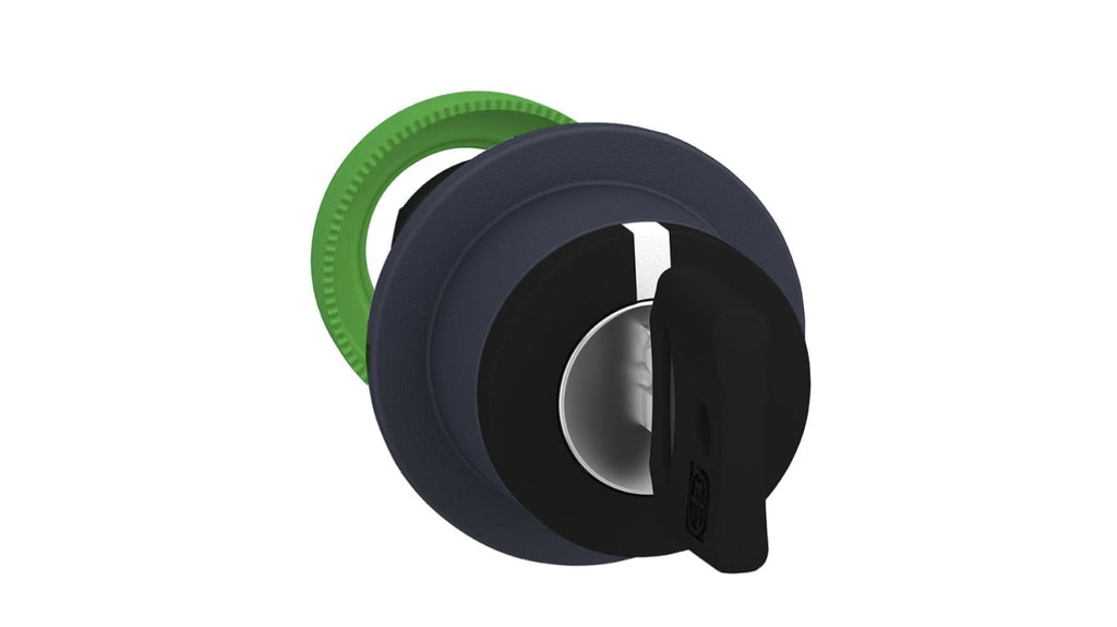 Testa selettore a chiave Schneider Electric serie Harmony XB5, montaggio a filo, 3 posizioni, diametro di montaggio 30 mm, ritenuta centro, angolo di corsa 45 gradi, interruttore a chiave nero, materiale cornice plastica, protezione IP66, IP67, IP69, temperatura operativa da -40 a +70 gradi, durata meccanica 1000000 cicli, applicazioni in settori industriali e marini.