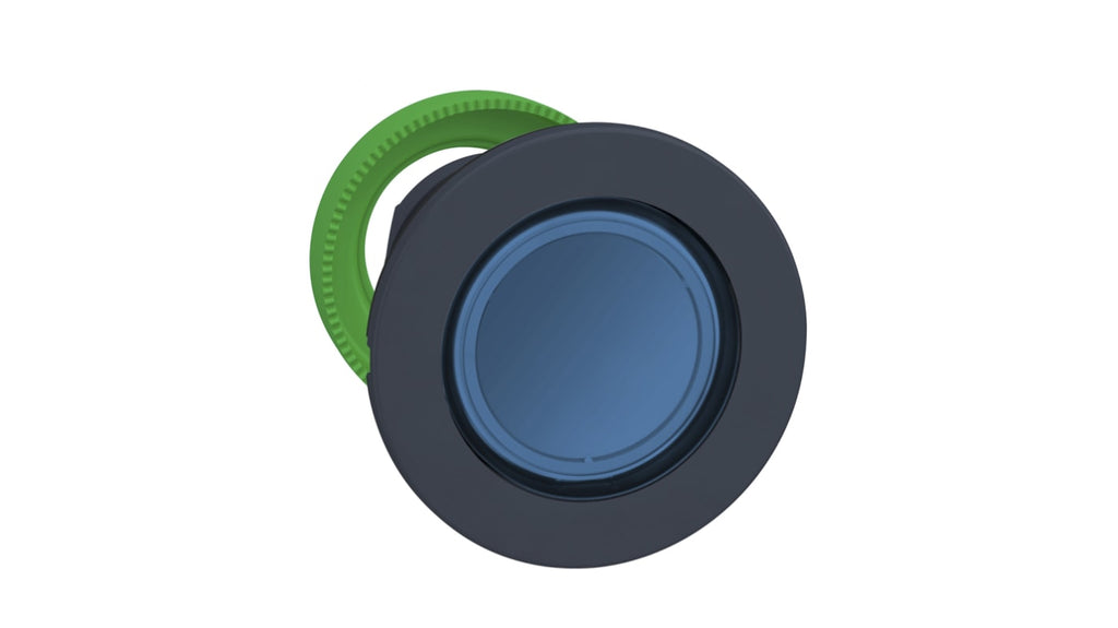 Attuatore pulsante tipo Mantenuto, serie ZB5, diametro foro 30 mm, colore blu, attuazione a pulsante, tipo rotondo, materiale plastica, protezione IP66, IP67, IP69K, temperatura d'esercizio da -40 a 70 gradi, elevata robustezza chimica, resistenza alle vibrazioni, ampia gamma di accessori, vari tipi di collegamento disponibili, design modulare, applicazioni in ambienti estremi.
