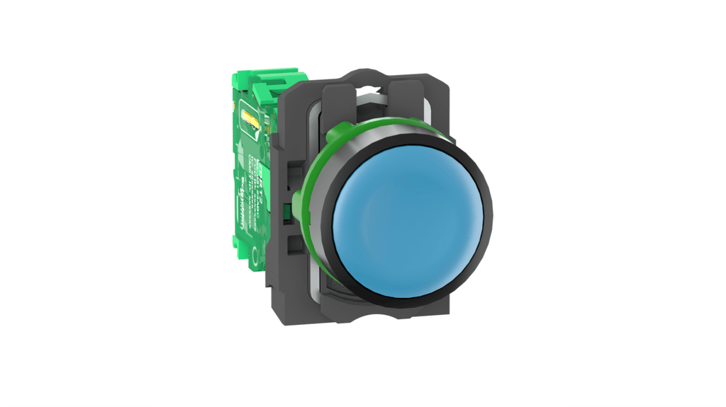 Interruttore di comando radio Schneider Electric, diametro forature pannello 22mm, colore pulsante blu, tipo di pulsante rotondo, serie Harmony XB5, materiale pulsante plastica, codice produttore ZB5RTA6, massima temperatura operativa 70 gradi Celsius, range di temperatura operativa da -40 a 70 gradi Celsius, minima temperatura operativa -40 gradi Celsius.