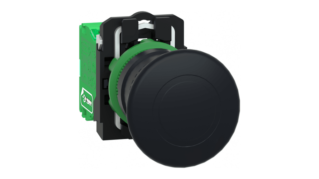 Interruttore di comando radio Schneider Electric, diametro forature pannello 40mm, colore pulsante nero, tipo di pulsante rotondo, serie Harmony XB5, codice produttore ZB5RTC2, massima temperatura operativa 70 gradi Celsius, minima temperatura operativa 25 gradi Celsius, range di temperatura operativa da 25 a 70 gradi Celsius.