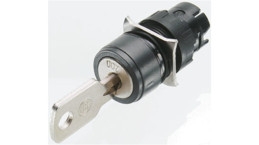 Interruttore a chiave con ritenuta, testa rotonda, nero, serie Harmony XB6, diametro foro 16 mm, 2 posizioni, tipo chiave Ronis, posizione di estrazione chiave giusta, attivazione stabile, protezione IP65, angolo di corsa 70 gradi, non illuminato, 2 chiavi incluse, potenza 250 V c.a. a 1,5 A, 250 V c.c. a 0,1 A, temperatura operativa da -25 a +70 gradi.