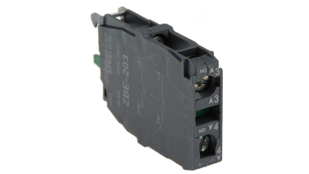 Blocco contatti Schneider Electric, 2 NA, terminali a vite, serie Harmony XB4/5. Durata meccanica di 100.000.000 cicli, corrente nominale 3A. Montaggio su collare a pulsante, con resistenza alle vibrazioni 5 gn e agli urti fino a 30/50 gn. Conforme a EN/IEC 60947-5-1, UL 508 e CSA C22.2 N. 14. Prodotto Schneider Green Premium, 18 mesi di garanzia.