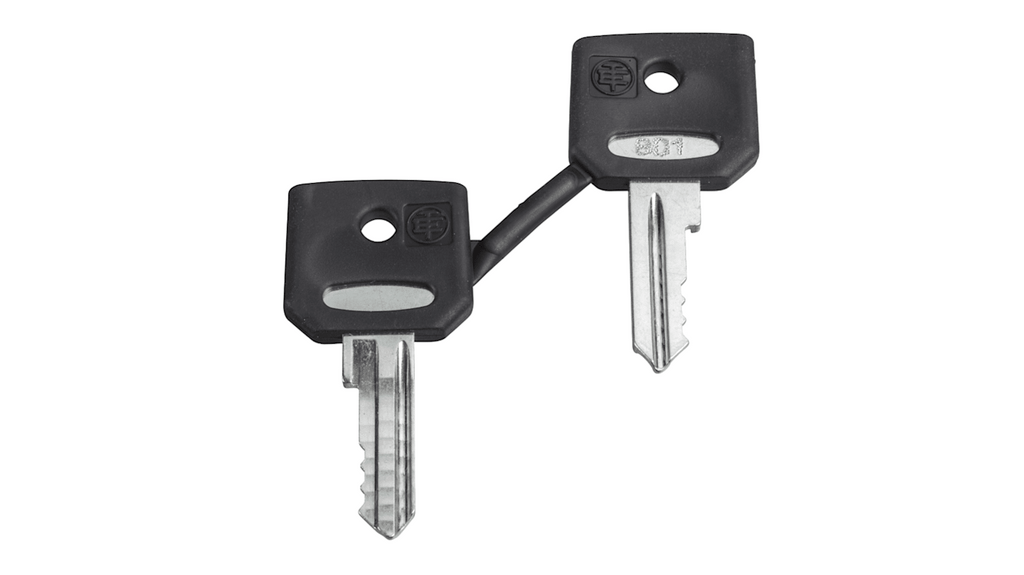 Chiave per interruttore a chiave, ZBG520E, per uso con pulsante di emergenza XB4/XB5. Set di 2 tasti, tipo di serratura a chiave Ronis, accessorio della serie Harmony di Schneider Electric. Compatibile esclusivamente con pulsanti di emergenza XB4/XB5.