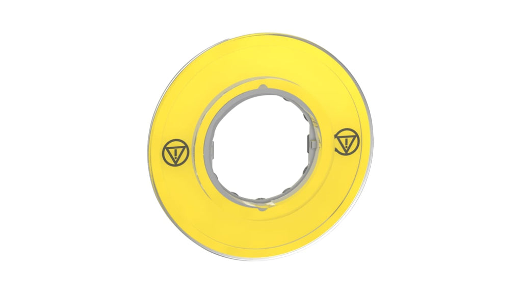 Etichetta 3D vuota per pulsante di spegnimento di emergenza. Piastra di legenda Schneider Electric, compatibile con serie Harmony XB4 e XB5, simbolo E-Stop conforme a EN ISO 13850, colore giallo. Progettata per una chiara identificazione dei pulsanti di arresto di emergenza. Accessorio per applicazioni industriali. Codice costruttore ZBY9121.