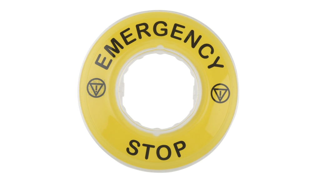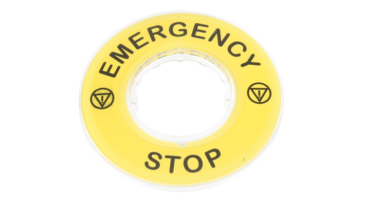 Piastra per legenda contrassegnata 3D per pulsante con testa a fungo per arresto di emergenza, diametro 60 mm, compatibile con serie Harmony XB4 e XB5. Realizzata in plastica resistente, colore giallo brillante con testo nero inciso per alta visibilità. Peso 4 g, ecologica e priva di metalli pesanti. Utilizzabile in automazione industriale e controllo dei processi. Codice costruttore ZBY9320, marchio Schneider Electric.