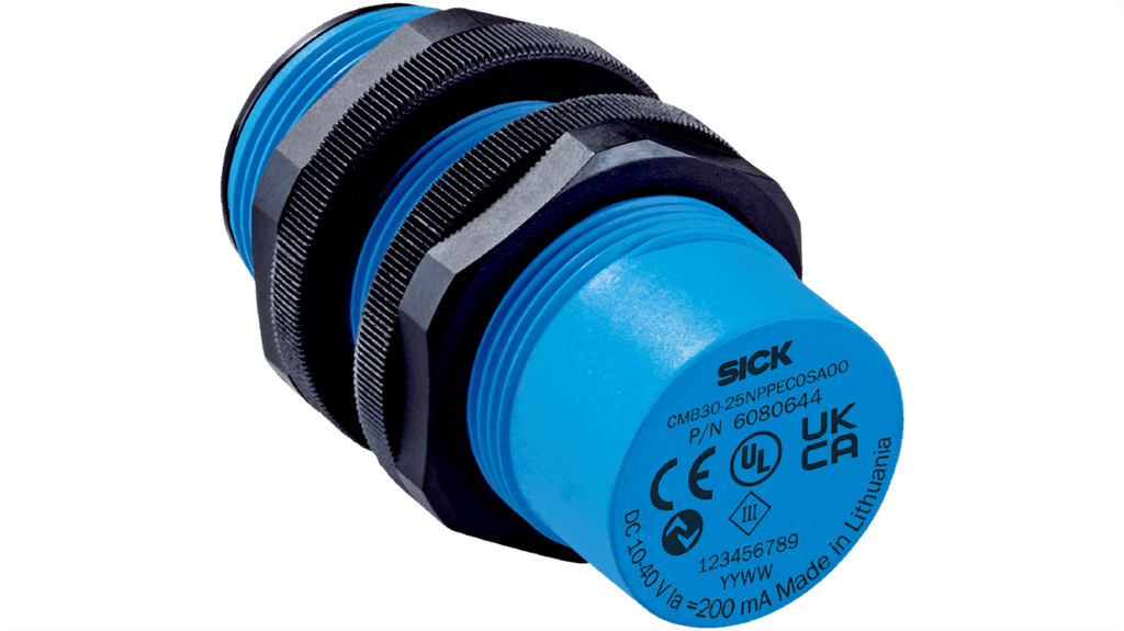 Sensore capacitivo cilindrico, M30 x 1.5, tecnologia PNP, gamma di rilevamento 0 a 25 mm, tensione di alimentazione 10 a 36 V CC, grado di protezione IP67, IP68, IP69K, temperatura operativa da -30 a +85 gradi, corrente di commutazione 200 mA, frequenza di commutazione 50 Hz, connettore maschio M12, materiale custodia PBT, schermato, interfaccia IO-Link, regolazione punto di commutazione tramite potenziometro.