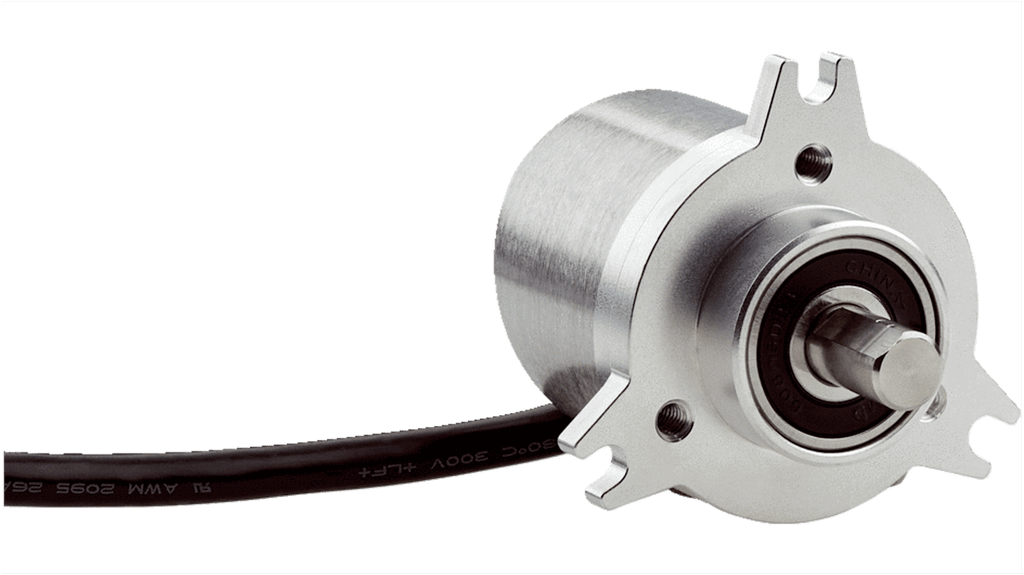Encoder incrementale, 512 impulsi per giro, diametro albero 8 mm, uscita TTL/HTL, grado di protezione IP65, tensione di alimentazione 30 V, corrente nominale 30 mA, rotazione massima 6000 giri/min, temperatura operativa da -20 a +85 gradi Celsius, montaggio a flangia, dimensioni 40 x 40 x 58.3 mm. Modello DBS50E-SKRJ00512, marchio Sick.