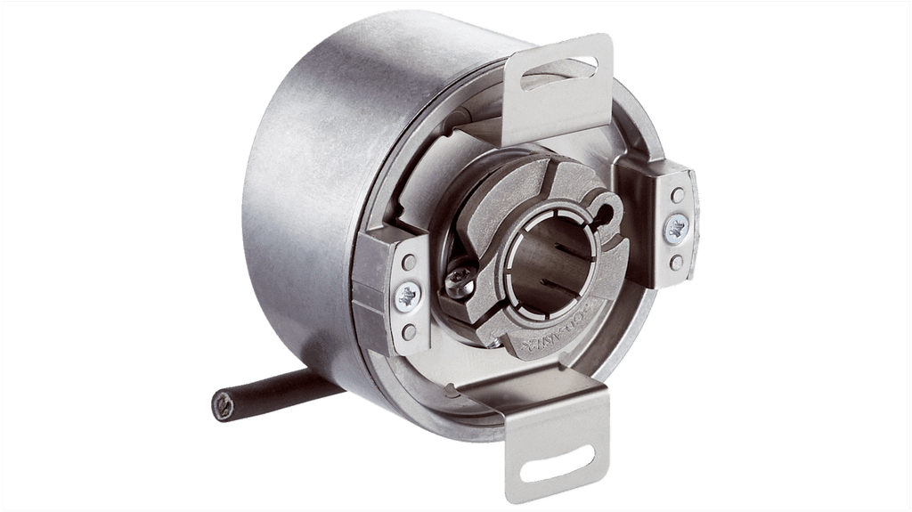 Encoder incrementale ad alta risoluzione, 1024 impulsi per giro, diametro albero 10 mm, uscita HTL/push-pull. Grado di protezione IP65/IP67, temperatura operativa da -40 a +100 gradi Celsius, tensione di alimentazione 32 V, corrente nominale 40 mA. Montaggio a flangia, connettore maschio. Dimensioni: 72 mm di altezza, 60 mm di larghezza, 43 mm di profondità. Rotazione massima 6000 giri/min.