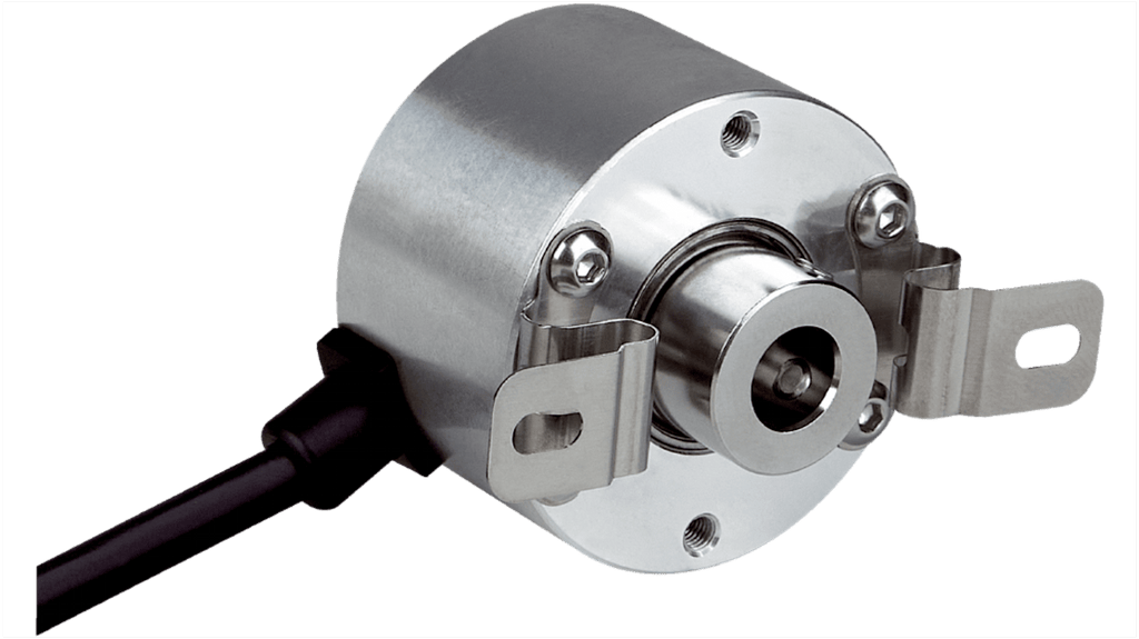 Encoder incrementale per misurazione della velocità e posizione, 500 impulsi per giro, diametro albero 10 mm, alloggiamento integrato nella flangia, design compatto, grado di protezione IP50, interfacce TTL/RS-422, HTL/Push Pull, Open Collector, alimentazione 10-27 V, temperatura operativa da -10 a +70 gradi Celsius, tipo di connessione cavo. Applicazioni in stampa, imballaggio, lavorazione metalli, legno, vetro e sistemi AGV.