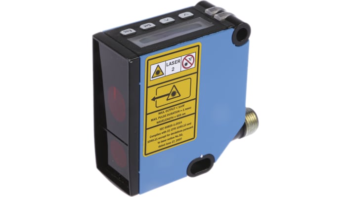 Sensore di distanza rettangolare a soppressione di sfondo, rilevamento da 100 mm a 600 mm, uscita analogica 4-20 mA, connettore a 5 pin M12, tensione massima 30V, corrente massima 100 mA, tempo di risposta 2,8 ms, temperatura operativa da -20°C a +55°C, grado di protezione IP65, custodia metallica, montaggio a pannello, luce laser rossa, precisione di misura fino a 0,5 mm.