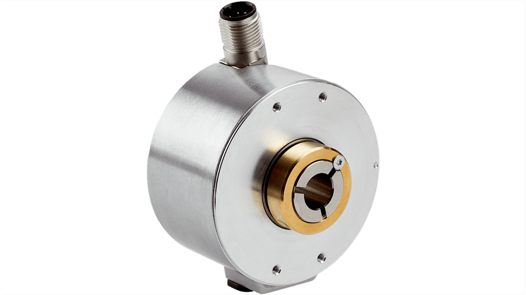Encoder incrementale rotativo, risoluzione fino a 2400 impulsi per giro, diametro albero 12 mm, uscita HTL e TTL, montaggio a flangia, grado di protezione IP65, temperatura operativa da -30 a +90 gradi Celsius, corrente nominale 120 mA, interfaccia di comunicazione con connettore maschio M12, LED di stato integrati, configurazione tramite interruttori DIP. Dimensioni: 58 mm x 58 mm x 43.8 mm. Codice costruttore DUS60E-TEKFAACA. Marchio Sick.