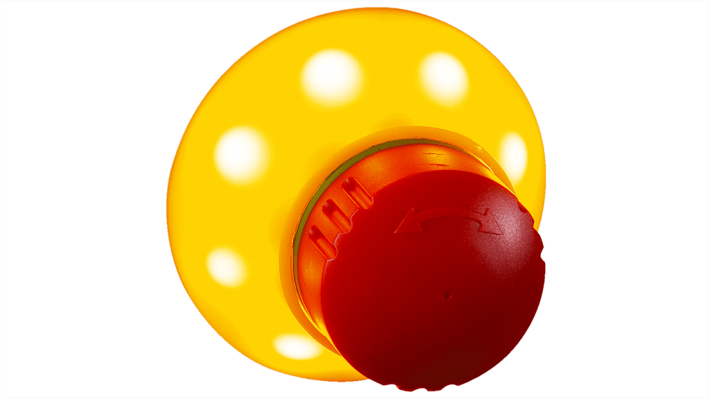 Pulsante di arresto di emergenza, modello ES21, marchio Sick. Versione da incasso o esterna, custodia nera o gialla, grado di protezione IP54. Dimensioni: 55mm di larghezza, 61mm di altezza, profondità 55mm, diametro pulsante 22mm. Materiale plastica, illuminato, contatti di arresto autocontrollati, display di stato con illuminazione ad anello LED. Connessione in serie con Flexi Loop.
