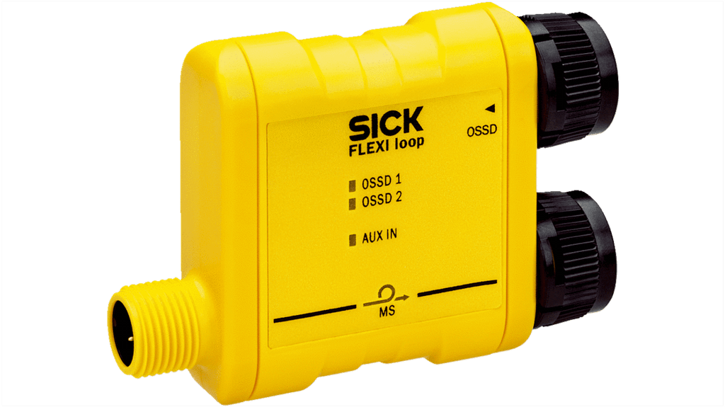 Nodo per sensori di sicurezza Flexi Loop, compatibile con sensori di tutti i produttori, tensione di alimentazione 16,8 a 30 V c.c., dimensioni 68,15 x 48 x 18 mm. Collega fino a 32 sensori in serie, fornisce informazioni diagnostiche dettagliate, ingressi e uscite standard integrati, alimentazione per i sensori inclusa. Utilizzabile con sistema Flexi Soft, riduce cablaggio e ingressi nel controller di sicurezza.