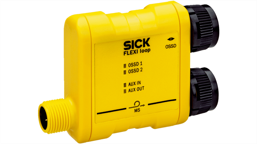 Nodo per sensori di sicurezza Flexi Loop, compatibile con sensori di tutti i produttori, tensione di alimentazione 16,8 a 30 V c.c., dimensioni 68,15 x 48 x 18 mm. Collega fino a 32 sensori in serie, fornisce informazioni diagnostiche dettagliate, ingressi e uscite standard integrati, alimentazione per i sensori inclusa. Utilizzabile con sistema Flexi Soft, riduce cablaggio e ingressi nel controller di sicurezza.