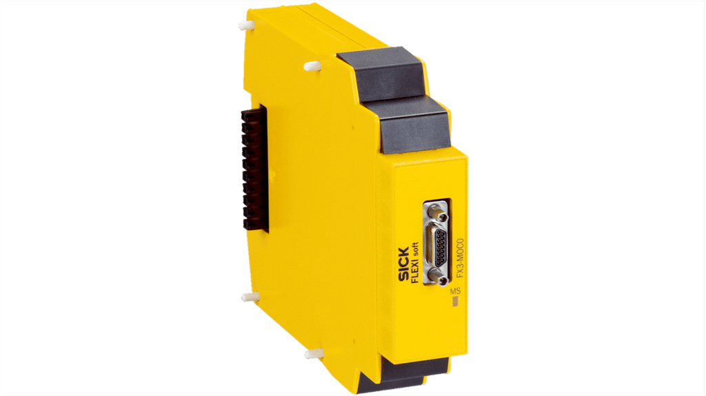 Modulo di controllo del movimento per sistema Flexi Soft, integrazione sicura tramite FLEXBUS+, montaggio su guida DIN, dimensioni 22,5 x 96,5 x 126 mm. Supporta fino a 6 scanner laser di sicurezza, monitoraggio simultaneo di 48 campi di protezione, configurazione tramite Safety Designer, tecnologia Ethernet industriale a prova di futuro.