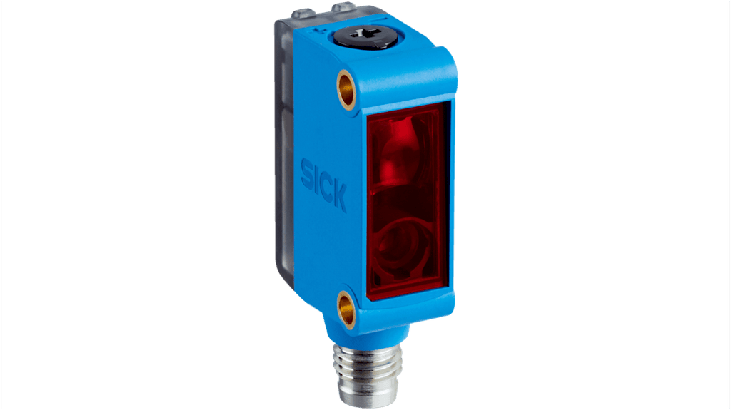 Sensore fotoelettrico a retroriflessione, rilevamento fino a 7,2 m, uscita PNP, con connettore M8 a 4 pin. Grado di protezione IP67, corrente massima 100 mA, tensione massima 30V. Temperatura operativa da -25°C a +55°C. Alloggiamento in plastica ABS/PC, montaggio filettato M8. Tempo di risposta 625 μs, conforme a CE e cULus. Serie G6.