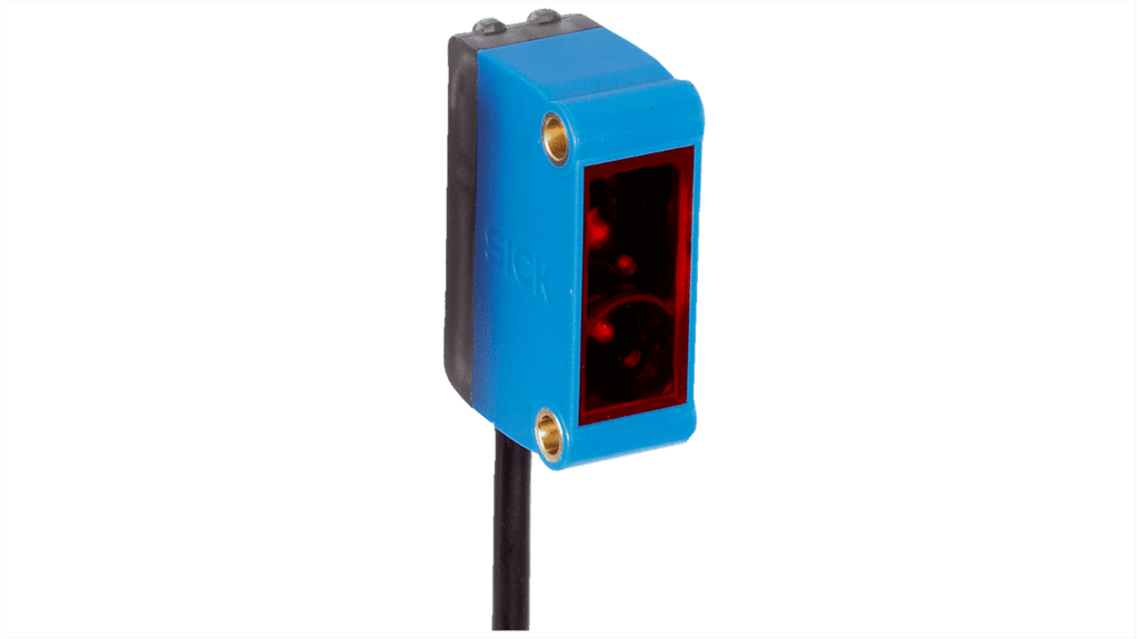 Sensore fotoelettrico rettangolare a retroriflessione, gamma di rilevamento 6 m, uscita NPN, tensione massima 30V, corrente massima 100 mA, tempo di risposta 625 μs, temperatura operativa da -25°C a +55°C, grado di protezione IP67, alloggiamento in plastica ABS/PC, montaggio filettato, cavo di 2 metri, conforme a CE e cULus.
