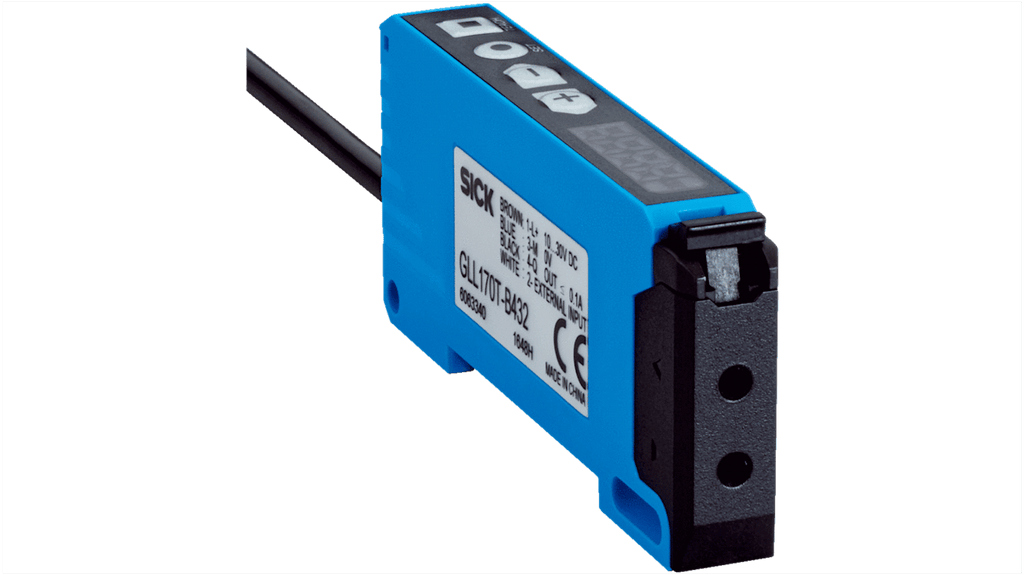 Sensore per fibre ottiche, PNP-NPN, tensione di alimentazione 10-30 V CC, grado di protezione IP66, tempo di risposta 50 microsecondi, frequenza di commutazione fino a 10 kHz, dimensioni 72,5 x 33,1 x 10 mm, materiale custodia plastica, temperatura operativa da -25 a +55 gradi Celsius, montaggio su circuito stampato, connessione tramite cavo. Variante con potenziometro e autoapprendimento disponibile.