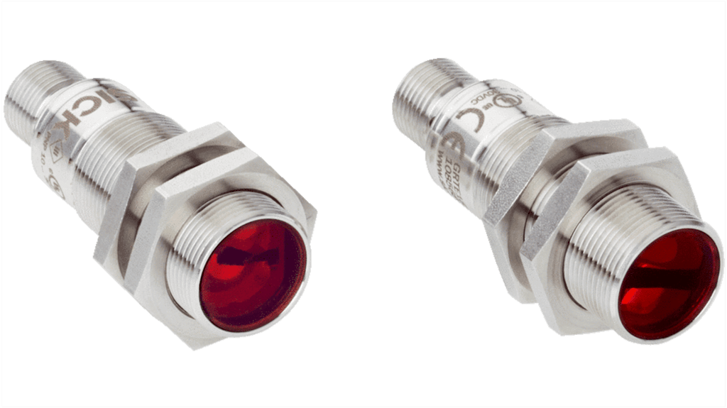 Sensore fotoelettrico cilindrico a fascio diretto, gamma di rilevamento 0 a 15 m, uscita commutazione luce/buio PNP, connettore M12 a 4 pin, grado di protezione IP67, IP68, IP69K, custodia in acciaio inox 1.4404/316L, temperatura operativa da -25 a +55 gradi, corrente massima 100 mA, tempo di risposta 0,0005 secondi, certificazione Ecolab, filettatura M18 per montaggio rapido.