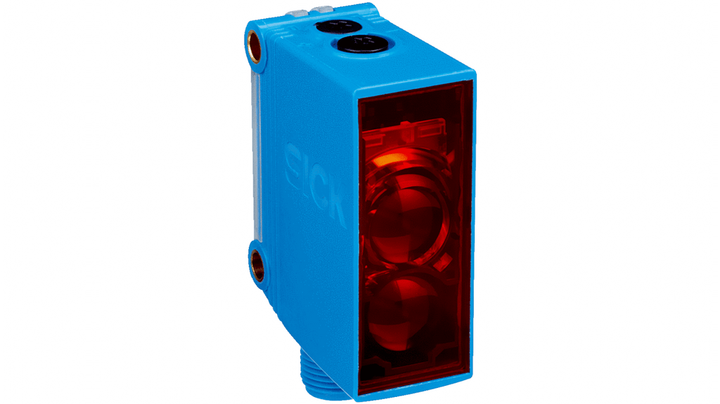 Sensore fotoelettrico rettangolare, rilevamento 20.2000 mm, uscita PNP, con connettore a 4 pin M12. Alimentazione 10-30 V CC o 24-240 VAC/VDC. Struttura compatta, robusta con fori rinforzati in metallo. Sistema di assemblaggio Q-Lock per installazione rapida. Ideale per applicazioni industriali e commerciali. Serie GTE10.