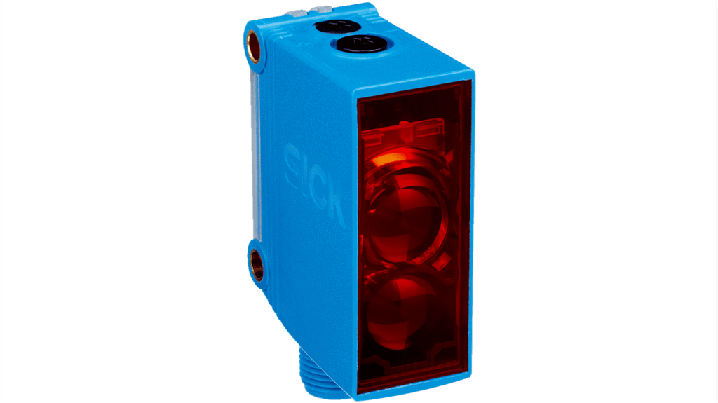 Sensore fotoelettrico rettangolare, rilevamento 20mm a 1,3m, uscita commutazione luce/buio PNP, alimentazione 10-30 V CC o 24 V AC/DC, grado di protezione IP67, corrente massima 100 mA, tempo di risposta 0,0005 secondi, temperatura operativa da -30 a +60 gradi Celsius, connettore M12 a 4 pin, struttura in plastica, sistema di montaggio Q-Lock. Codice costruttore GTE10-P4211, marchio Sick.