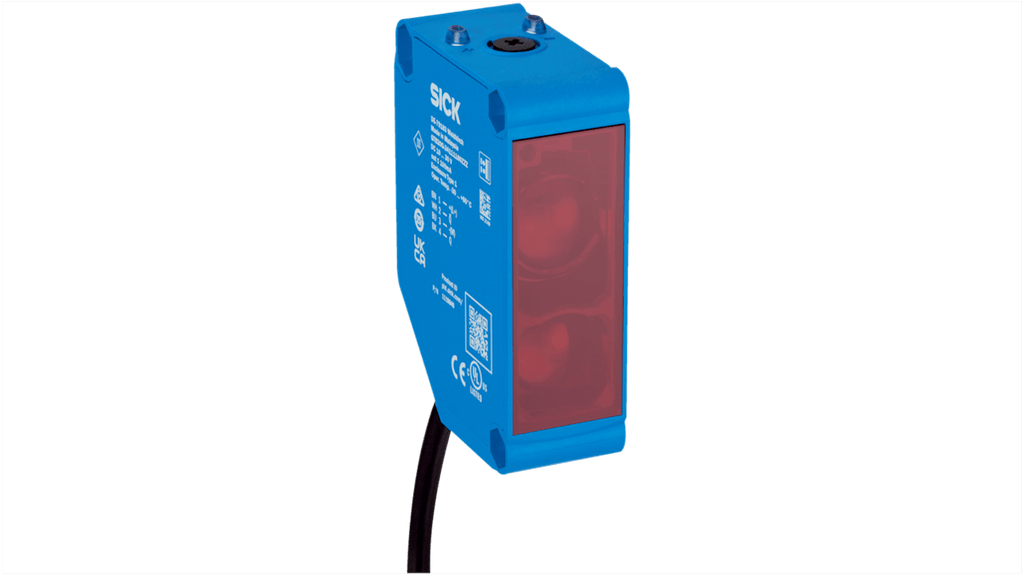 Sensore fotoelettrico rettangolare, rilevamento fino a 2 m, uscita relè, connettore maschio M12, alimentazione CC e CA/CC, grado di protezione IP67, temperatura operativa da -30 a +60 gradi, corrente massima 3 A, tempo di risposta 15 ms, custodia in plastica, conforme agli standard CE. Modello GTE20G-1IRC1170ZZZ, marchio Sick.