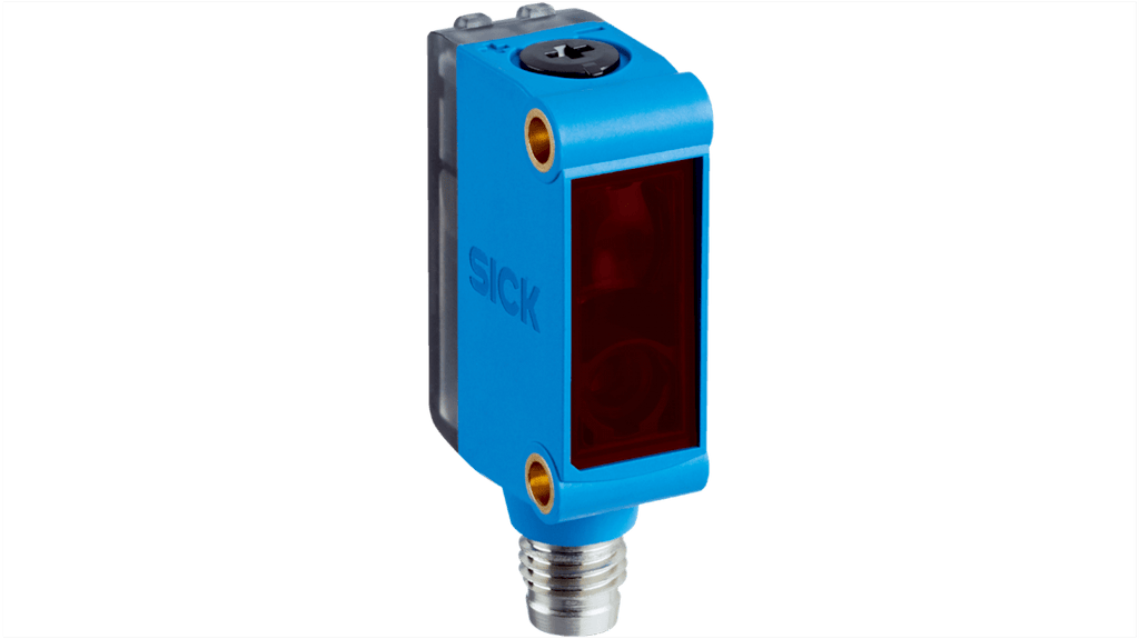 Sensore fotoelettrico rettangolare, rilevamento 400 mm, uscita PNP, con connettore maschio a 4 pin M8. Custodia in plastica, grado di protezione IP67, temperatura operativa da -20 a +50 gradi Celsius, corrente massima 100 mA, tempo di risposta 0,625 ms. Montaggio a pannello, conforme a CE e cULus. Sorgente di luce rossa a luce visibile.
