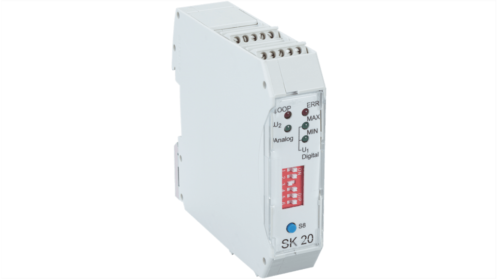 Convertitore di segnale Sick serie HN, codice HN.SK20.2, per la conversione da SSI a segnale analogico. Ingresso SSI, uscita analogica 0 mA a 20 mA, 4 mA a 20 mA, 0 V a 10 V. Funzione di condizionamento del segnale tramite conversione. Prodotto progettato per applicazioni industriali.