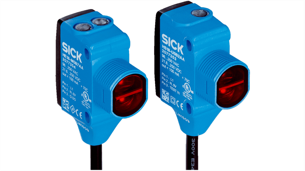 Sensore fotoelettrico rettangolare, rilevamento attraverso il fascio fino a 25 m, uscita MOSFET, cavo a 4 pin, 150 mm, con connettore maschio, micro. Grado di protezione IP67, temperatura operativa da -40 a +70 gradi, sorgente di luce rossa a luce visibile, tempo di risposta 0,5 ms, corrente massima 100 mA, standard CE e cULus, montaggio a pannello, custodia in plastica.