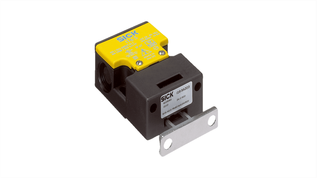 Interruttore di interblocco di sicurezza con attuatore separato, 1NA/1NC, tensione massima 240V ca, corrente massima 3A, grado di protezione IP67, custodia in polibutilene tereftalato, dimensioni 75 x 52 x 32mm, temperatura operativa da -20 a +80 gradi, compatibile con pressacavi M20 X 1,5 o connettore M12, standard CE. Ideale per monitoraggio di protezioni ruotabili e scorrevoli.