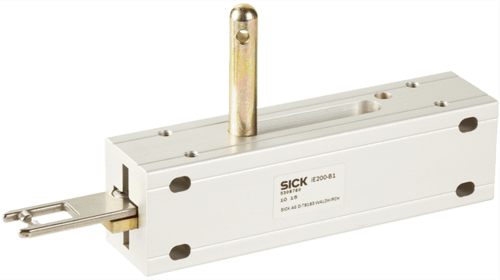 Attuatore Sick, modello iE200-B1, con azionamento rigido per un funzionamento robusto. Raggio minimo della porta ≥ 175 mm. Tipo accessori: attuatore, serie iE200. Progettato per applicazioni industriali che richiedono affidabilità e precisione.