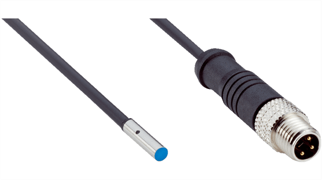 Sensore di prossimità induttivo cilindrico, PNP, M8 x 1, rilevamento 1 mm, tensione di alimentazione 10-30 V CC, corrente di commutazione 100 mA, frequenza di commutazione 4,2 kHz, grado di protezione IP67, temperatura operativa da -25 a +70 gradi Celsius, alloggiamento in acciaio inossidabile, comunicazione IO-Link, dimensioni 12 mm x 3 mm, montaggio a filo, conforme a CE e EAC.