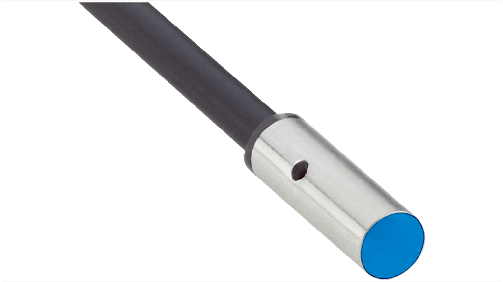 Sensore di prossimità induttivo cilindrico, tecnologia PNP, filettatura M4 x 0,5, gamma di rilevamento 1,5 mm, tensione di alimentazione 30 V CC, corrente di commutazione 200 mA, frequenza di commutazione 4,8 kHz, grado di protezione IP67, temperatura operativa da -25 a +70 gradi, alloggiamento in acciaio inossidabile, comunicazione IO-Link, montaggio a filo, dimensioni 12 x 4 x 4 mm.