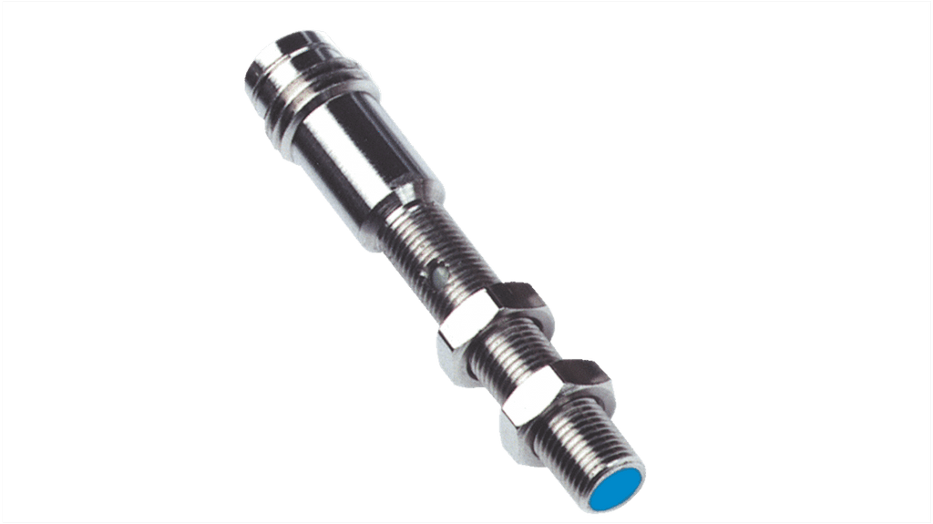 Sensore di prossimità induttivo cilindrico, tecnologia NPN, filettatura M5 x 0.5, gamma di rilevamento 0,8 mm, tensione di alimentazione 10-30 V CC, grado di protezione IP67, temperatura operativa da -25 a +70 gradi Celsius, alloggiamento in acciaio inossidabile, frequenza di commutazione massima 5000 Hz, montaggio a filo, compatibile con IO-Link. Standard CE, cULus, EAC. Codice costruttore IM05-0B8NS-ZT1.