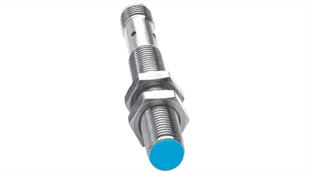 Sensore di prossimità induttivo cilindrico, tecnologia PNP, M8 x 1, gamma di rilevamento 1,5 mm, tensione di alimentazione 10-30 V CC, corrente di commutazione 100 mA, frequenza di commutazione 3 kHz, grado di protezione IP67, temperatura operativa da -25 a 70 gradi Celsius, custodia in ottone nichelato, montaggio a filo, lunghezza 50 mm, larghezza 8 mm, conforme a CE e cURus.