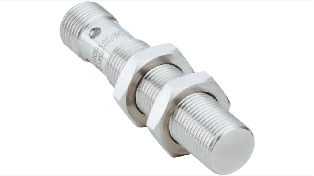 Sensore di prossimità induttivo cilindrico, tecnologia induttiva, uscita PNP, gamma di rilevamento 4 mm, tensione di alimentazione 30 V CC, grado di protezione IP67, temperatura operativa da -25 a 85 gradi Celsius, montaggio a filo, connettore a 4 pin M12, custodia in acciaio inossidabile, frequenza di commutazione massima 600 Hz, corrente di commutazione 200 mA. Codice costruttore IM12-06BPO-NC1, marchio Sick.