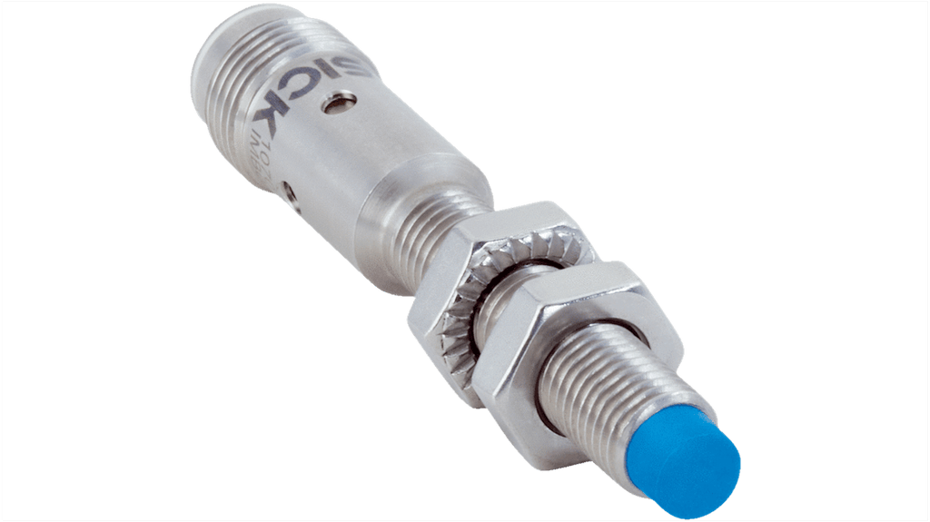 Sensore di prossimità induttivo cilindrico, tecnologia NPN, filettatura M8 x 1, gamma di rilevamento 4 mm, tensione di alimentazione 10-30 V CC, corrente di commutazione 200 mA, frequenza di commutazione 4 kHz, grado di protezione IP68 e IP69K, temperatura operativa da -40 a +100 gradi Celsius, corpo in acciaio inox, connettore maschio M12, schermato, protezione da inversione di polarità e sovraccarico.