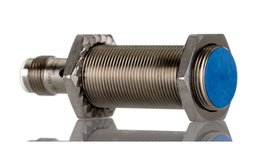 Sensore di prossimità cilindrico induttivo, M18 x 1, PNP normalmente aperto, gamma di rilevamento 8 mm, tensione di alimentazione 10-30 V, corrente di commutazione 200 mA, grado di protezione IP68 e IP69K, temperatura operativa da -40 a +100 gradi, custodia in acciaio inox, connettore M12 a 4 pin, frequenza di commutazione massima 1 kHz, protezione da inversione di polarità e sovraccarico.
