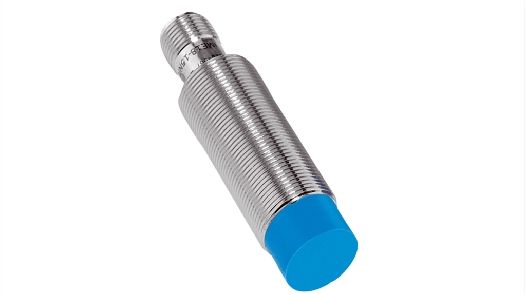Sensore di prossimità induttivo cilindrico, tecnologia induttiva, uscita NPN, dimensione filetto M18 x 1, gamma di rilevamento 8 mm, tensione di alimentazione 10-30 V CC, grado di protezione IP67, temperatura operativa da -25 a +75 gradi, custodia in ottone, montaggio a filo, corrente di commutazione 200 mA, frequenza di commutazione massima 1000 Hz, conforme a standard CE e EAC.